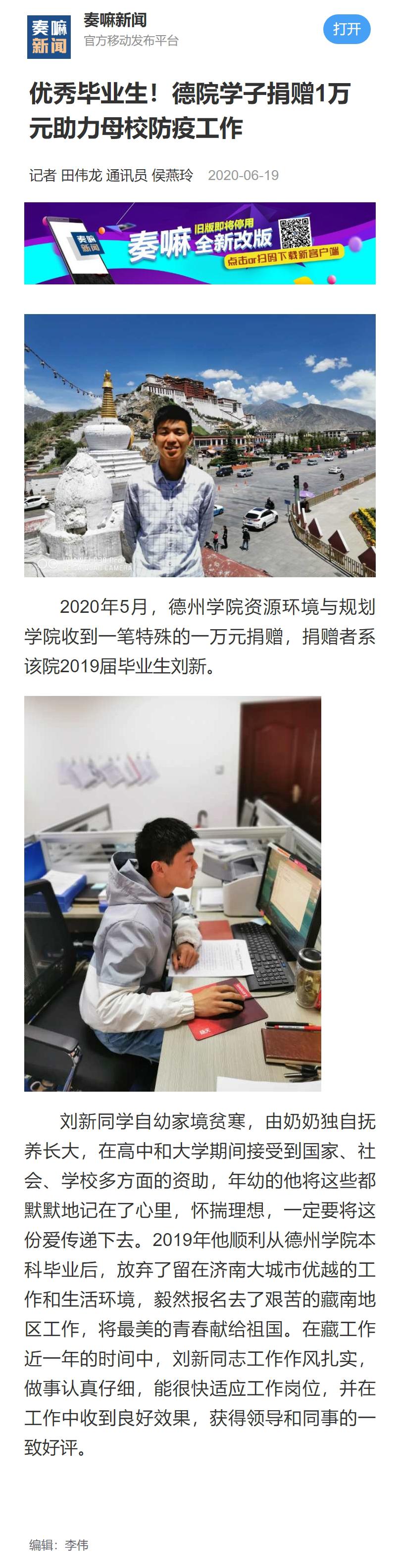 【奏嘛新闻】优秀毕业生!德院学子捐赠1万元助力母校防疫工作