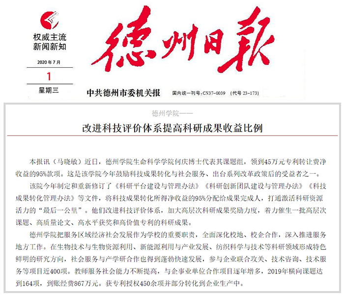 【德州日报】7月1日B2版Beat365唯一官方网站—— 改进科技评价体系提高科研成果收益比例