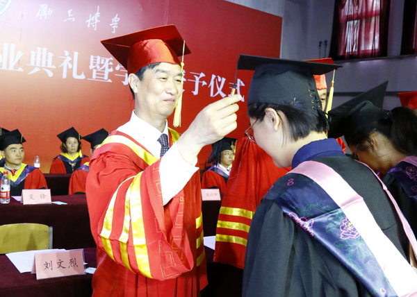 6月,学校举行了隆重的2018届本科毕业生毕业典礼和学位授予仪式。校领导为4684名身着学士服的本科毕业生一一拨流苏、颁发学位证书,和上台的每组同学合影留念,彰显了庄严的仪式感。