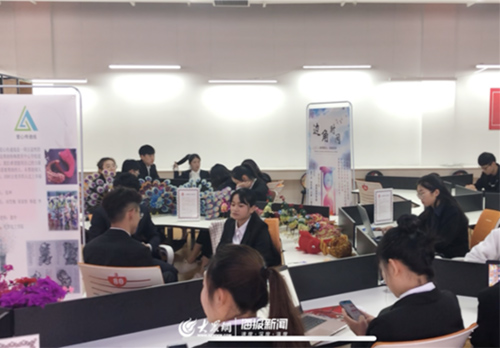 仪式结束后,与会领导和嘉宾参观“七点创业谷”。在创新创业学院“七点创业谷”现场,纺织服装学院老师朱莉娜和学生共同创建的生态染色工艺品智造工坊内,各色扎染手工艺品吸引了众人的围观。“我从事这一行已经七八年了,之前一直做服装设计,后来转到扎染。”朱莉娜告诉大众网记者,扎染作为一个新的领域,所学专业和纺织、服装等相关企业的结合面较大,学生的就业也相对容易。如今,工作室已经有三十多人,除了偶尔接一些私人订制作品,最主要的还是探索和企业的合作模式。
