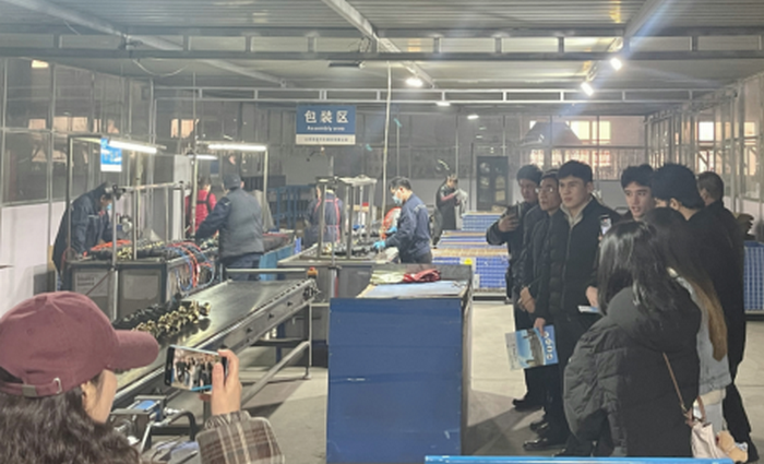 1月29日,武城县工业园区的车间里机器轰鸣,来自吉尔吉斯斯坦、印度尼西亚等国的11名留学生,带着对中国制造业的好奇,走进天亚汽车部件有限公司和同源餐车有限公司。