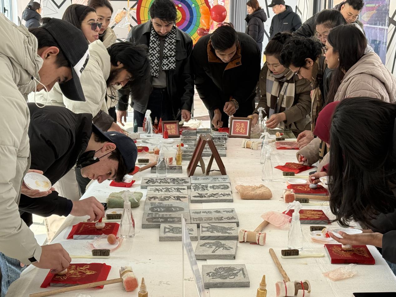 文化街区深体验。2月7日,青年教师化身“文化向导”,带领来自多国的20余名留学生深入德城区杨家圈文化街区,参观非遗展厅、体验拓印技艺。在拓印体验区,留学生们拿起棕刷,在非遗传承人的指导下,亲手制作出带有吉祥纹样的拓片。“原来这就是中国的传统技艺,太神奇了!”阿尔及利亚留学生萨米说,“我要把这个拓片带回去,告诉我的家人中国文化有多棒。”通过精心设计的沉浸式体验,留学生们跳出了“走马观花”的固有模式,在红灯笼高悬、年味氤氲的街巷中,驻足欣赏民俗表演,用镜头记录真实生动的“中国年”景象,并通过社交平台实时分享至海外,找准了感知中国文化的叙事切口。