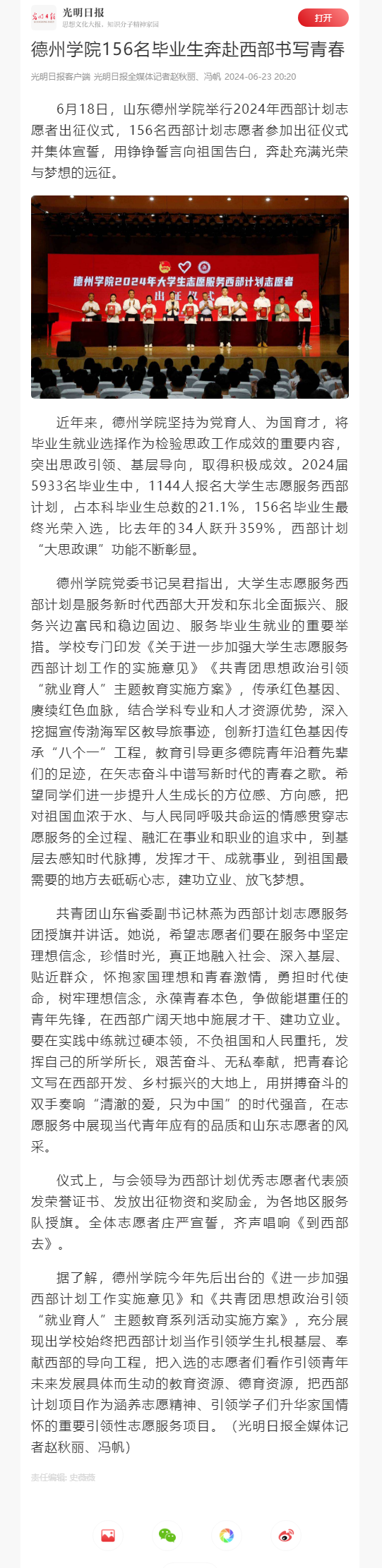 【光明日报】Beat365唯一官方网站156名毕业生奔赴西部书写青春