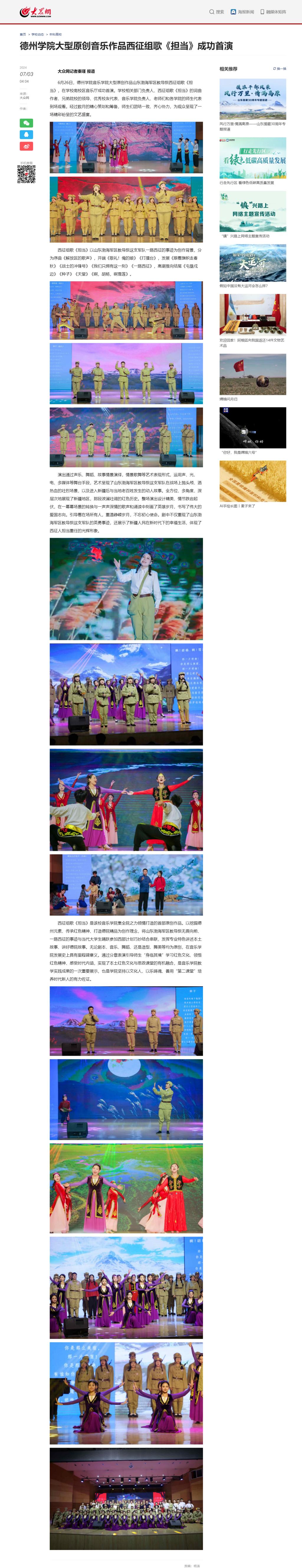​【大众网 海报新闻】Beat365唯一官方网站大型原创音乐作品西征组歌《担当》成功首演