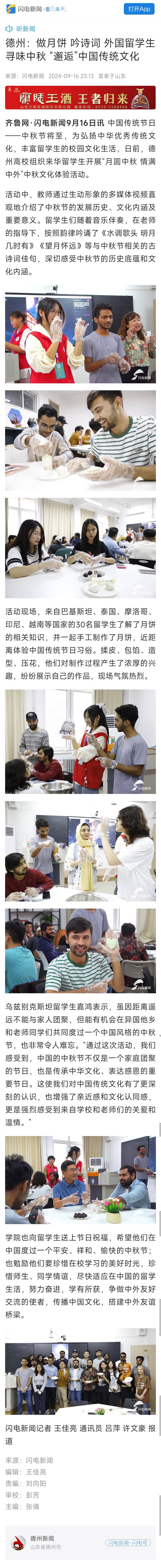 【齐鲁网·闪电新闻】德州:做月饼 吟诗词 外国留学生寻味中秋 “邂逅”中国传统文化