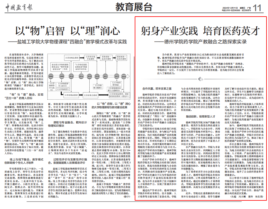 躬身产业实践 培育医药英才