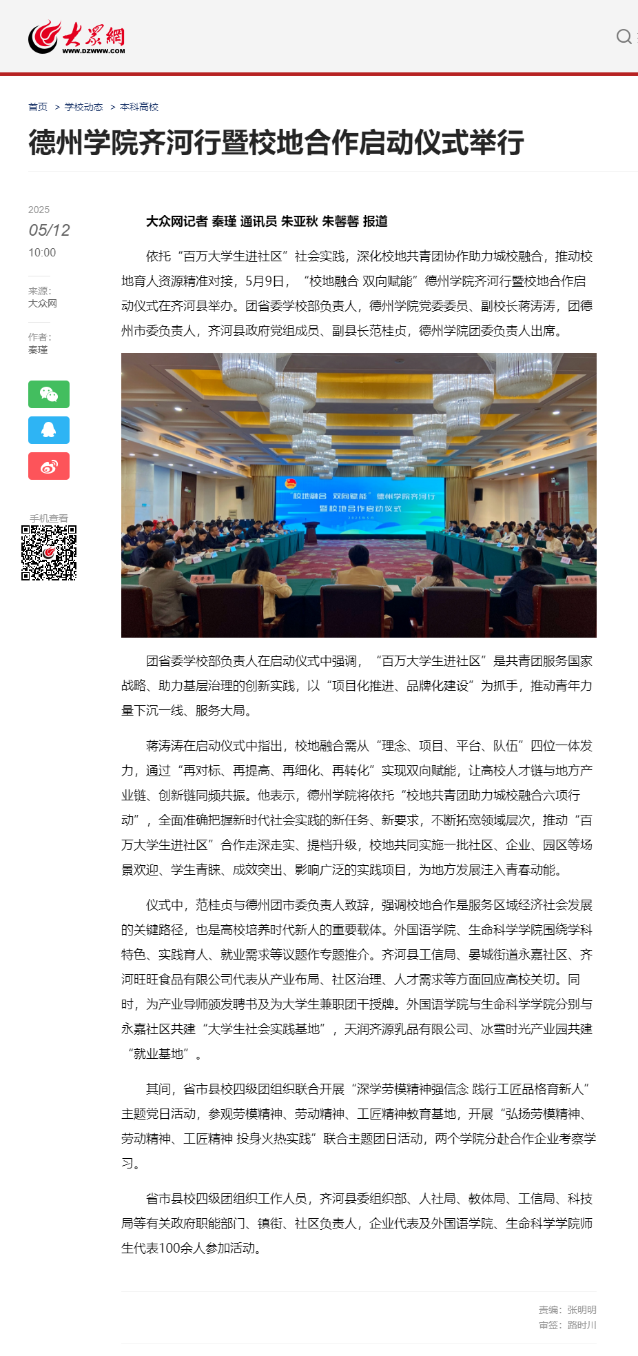 【大众网】Beat365唯一官方网站齐河行暨校地合作启动仪式举行