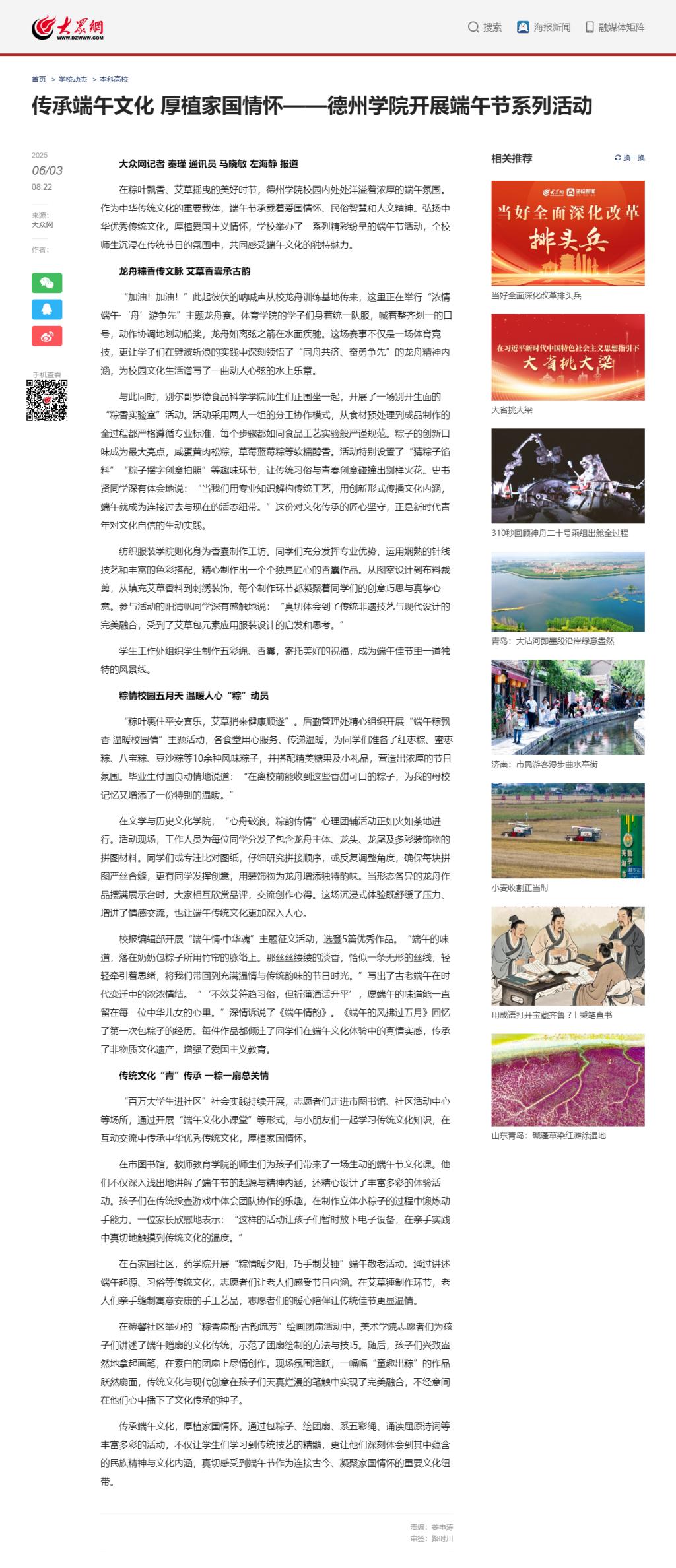 【大众网】传承端午文化 厚植家国情怀——Beat365唯一官方网站开展端午节系列活动
