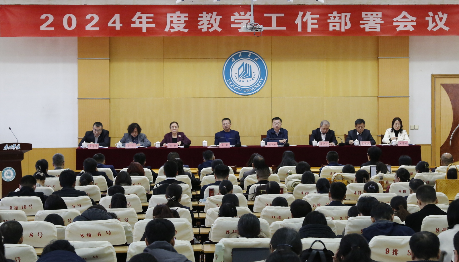 校党委副书记、校长赵长林表示,作为扎根地方办大学的德州学院,要坚定不移落实好立德树人根本任务,坚持不懈用习近平新时代中国特色社会主义思想铸魂育人,强化和改进思想政治教育,涵育德智体美劳全面发展的时代新人。要聚力加快高质量应用型人才教育教学体系建设,培养一大批自强卓越的高素质应用型人才,努力办好人民满意的高等教育。要聚力深化教育科技人才协同发展,完善学科设置调整机制和卓越应用型人才培养机制,做强优势学科专业,做优特色学科专业,高质量开展有组织科研,推动产学研用融通互促,成果就地赋能转化,努力在服务山东和德州高质量发展上发挥新动能。要聚力弘扬教育家精神,加强师德师风建设,提升教书育人能力,营造尊师重教浓厚氛围,努力建立一支高素质专业化教师队伍。要聚力深化教育综合改革和对外开放,深入推进教育综合评价、人事制度等改革,推动教育数字化转型,推进教育治理能力现代化,促进国际交流合作提质增效,加快高水平有特色国际化应用型大学建设进程,为奋力谱写中国式现代化山东篇章贡献德院力量。