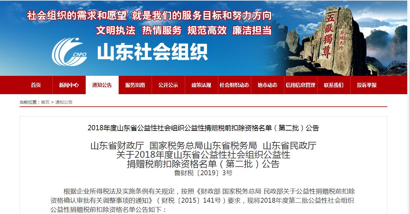 近日,根据《山东省财政厅 国家税务总局山东省税务局 山东省民政厅关于2018年度山东省公益性社会组织公益性捐赠税前扣除资格名单(第二批)公告》(鲁财税〔2019〕3号),Beat365官网教育发展基金会获得2018年度非营利组织免税资格。这是Beat365官网教育发展基金会继获得2017年度公益性捐赠税前扣除资格以来,第二次获得的本基金会免税资格。