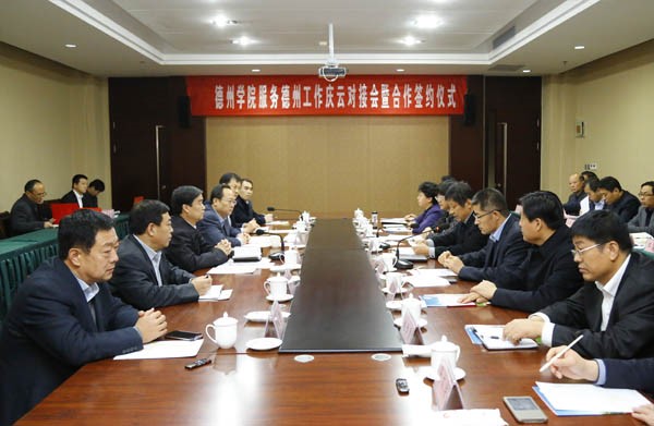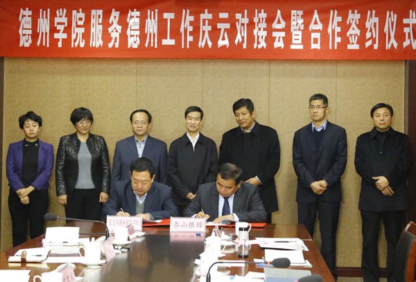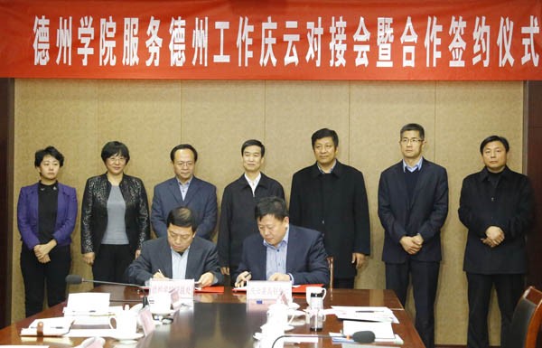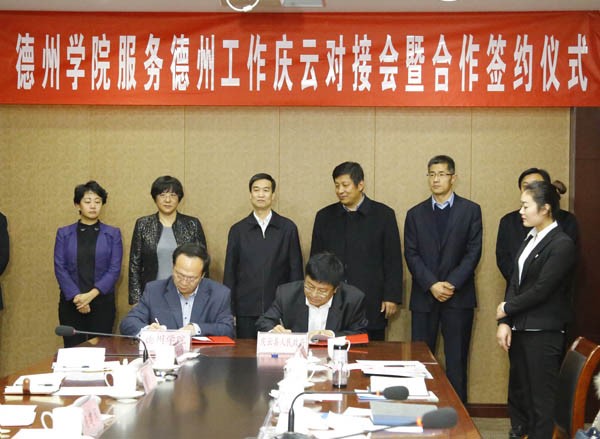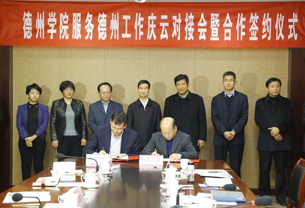 12月23日下午,为贯彻落实中共德州市委办公室、德州市人民政府办公室《关于转发<Beat365唯一官方网站服务德州行动计划(2016-2020年)>的通知》和Beat365唯一官方网站服务德州工作会议精神,Beat365唯一官方网站服务德州工作庆云对接会暨合作签约仪式在庆云县举行。庆云县委书记王晓东,县委副书记孙洪昌,县人大常委会主任高丽霞,县政协主席李勇,县委副书记赵晓静,县委常委、副县长赵作勇,副县级领导干部张万里,Beat365官网党委书记刘文烈,党委委员、副校长巩建闽出席签字仪式。