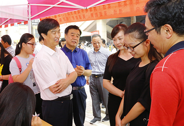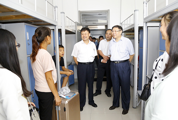 9月2日,党委书记刘文烈,党委副书记、校长冯健分别带领党委副书记、纪委书记展德明,党委副书记季桂起,副校长王金利,校长助理李永平及有关部门负责人检查指导迎新工作。