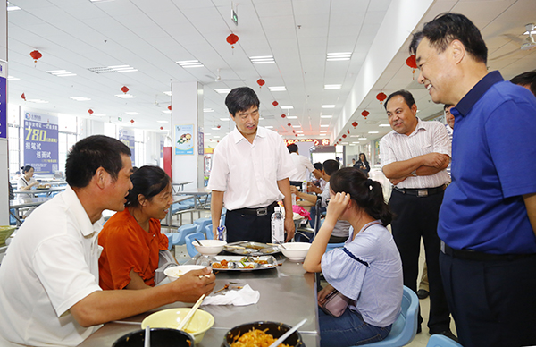 校领导深入新生报到现场,向参加迎新工作的干部、教职工、学生表示慰问;与新生及家长亲切交谈,了解他们来到学校的感受及对学校迎新工作的意见建议,勉励新同学尽快适应新环境,开启精彩的大学生活。校领导走进学生公寓,认真查看学生床铺、卧具、生活用品安置情况;对公寓管理人员表示慰问,了解公寓管理、饮水供应等方面的情况。在学生食堂,校领导认真查看了迎新期间的饮食服务保障情况,与学生家长亲切交谈,征求他们对餐厅伙食的建议,并对餐厅工作人员表示慰问。