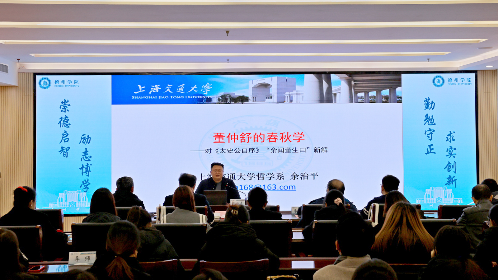 仪式结束后,书院开班,余治平教授作了题为《董仲舒的春秋学——对<太史公自序>“余闻董生曰”新解》的首场学术报告。