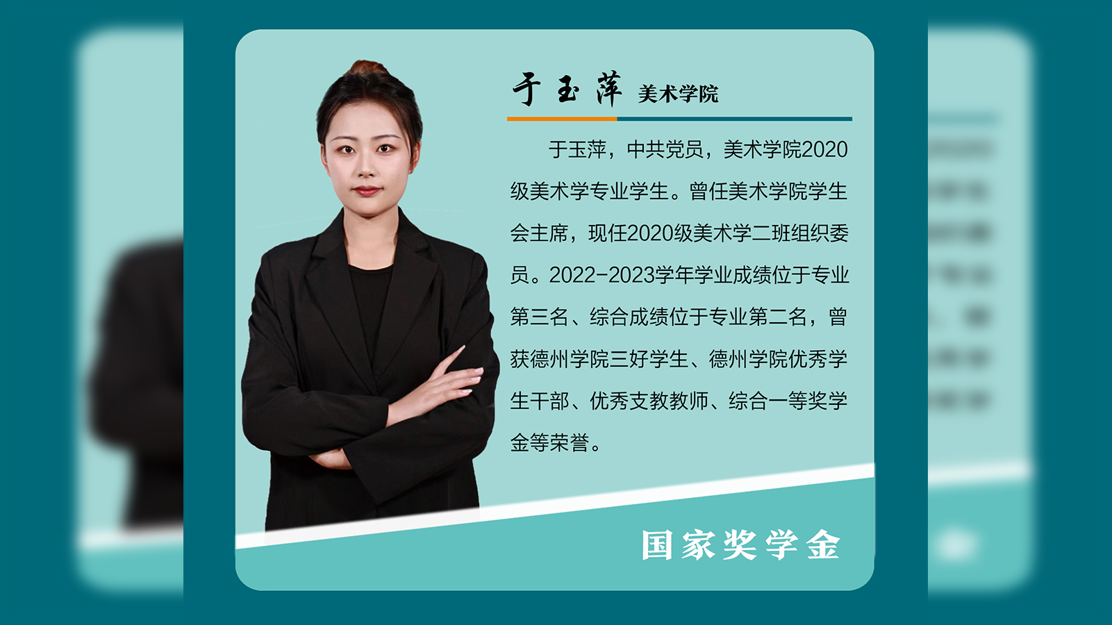 于玉萍,中共党员,美术学院2020级美术学专业学生。曾任美术学院学生会主席,现任2020级美术学二班组织委员。2022-2023学年学业成绩位于专业第三名、综合成绩位于专业第二名,曾获Beat365唯一官方网站三好学生、Beat365唯一官方网站优秀学生干部、优秀支教教师、综合一等奖学金等荣誉。信心坚定,向党靠拢于玉萍同学思想上积极要求进步,热爱祖国,拥护中国共产党的领导。她诚实守信,遵守学校的规章制度。在大一时,她就主动递交了入党申请书,积极...