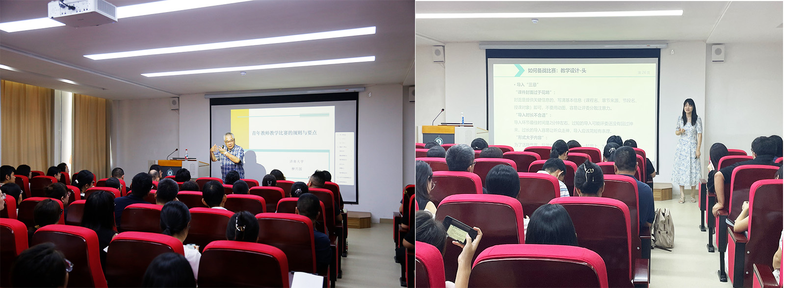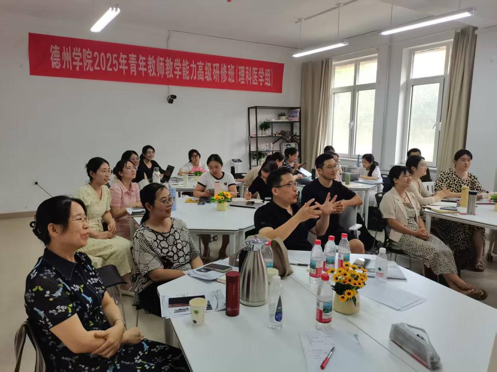 训练营采用“理论+实践”双轮驱动模式,构建“教学研讨+技能演练+专家报告+同行交流”四位一体的培养体系。通过参与式教学、案例分析等多元形式,重点打造分学科教学沙龙特色板块,特邀全国第七届青教赛一等奖获得者、山东师范大学张慧伦,全国第七届青教赛三等奖获得者、烟台大学刘媛媛,全国第七届青教赛三等奖获得者、山东农业大学田大东3位教授担任导师,联合校内8位省级教学比赛获奖教师组成指导团队,按文科思政、理科医学、工科分组指导。专家团队聚焦教学设计、课堂实施、教学反思等关键环节,建立“实践-反馈-优化”闭环机制,有效促进青年教师教学理念更新和教学能力提升。