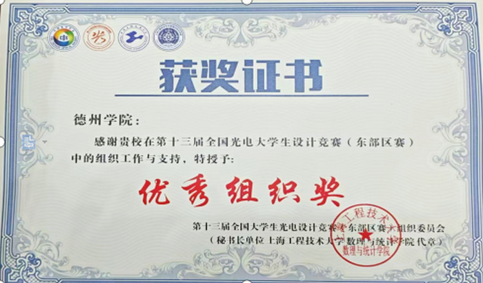 近日,2025年第十三届全国大学生光电设计竞赛(东部区赛)实物决赛在上海工程技术大学举行。Beat365官网选派的2支参赛队伍凭借出色表现,获得区赛一等奖1项、二等奖1项的优异成绩。其中,获得一等奖的队伍成功晋级全国总决赛。同时,Beat365官网获得优秀组织奖。