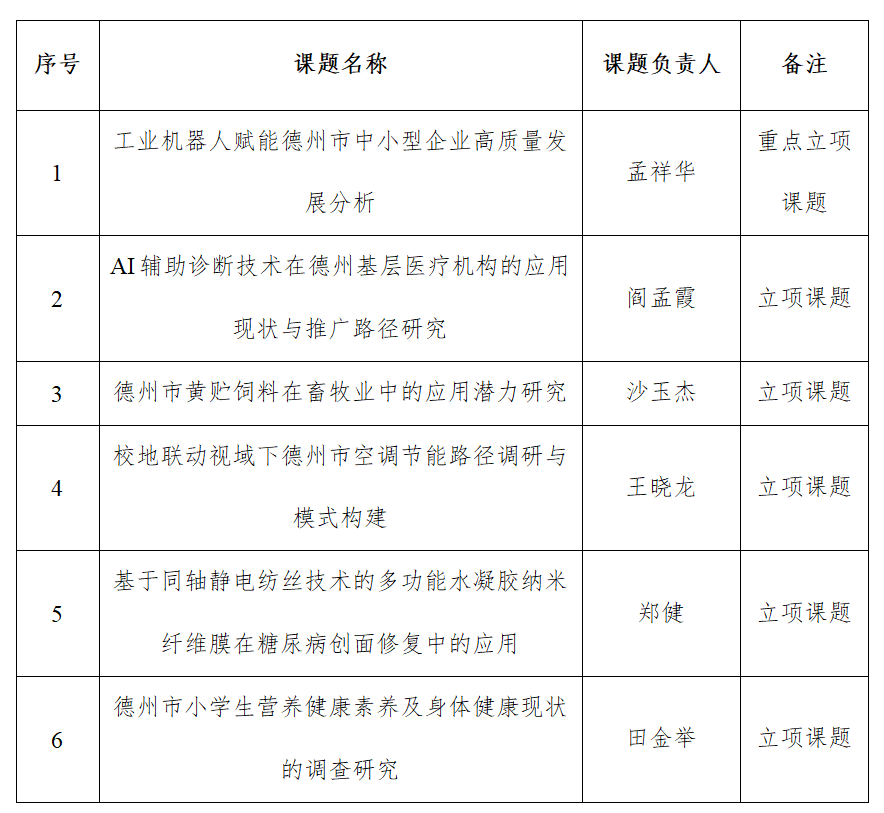 近日,德州市科学技术协会公布了2025年度德州市科协智库调研课题立项名单,Beat365官网6项课题获批立项,其中1项课题为重点立项课题。