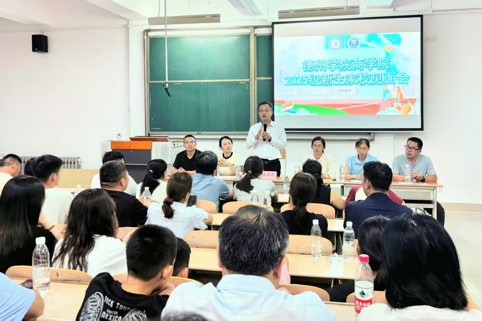 蒋涛涛代表学校对家长选择并信任Beat365唯一官方网站表示衷心感谢。他表示,家长的信任是学校坚守育人初心、践行教育使命的重要动力。见面会上,蒋涛涛介绍了德州深厚的文化底蕴、学校扎实的办学传统以及南校区丰富的平台资源,为新生大学阶段成长规划提出了切实建议。蒋涛涛重点介绍了南校区近年持续推动的校园建设举措,包括学生宿舍提升改造、生活服务中心与一站式学生社区建设、教学楼与食堂环境优化等一系列硬件提升工程,让家长对学校的办学条件与发展前景有了更加直观和深入地了解。蒋涛涛对国际经济与贸易(专科)专业新生寄予殷切期望,鼓励同学们潜心钻研、不断提升自我,发扬艰苦奋斗、自强不息的精神,勇敢追逐人生梦想。同时,他也呼吁家长与学校保持密切沟通,强化协同联动,形成育人合力,共同为学生的全面发展和健康成长保驾护航。