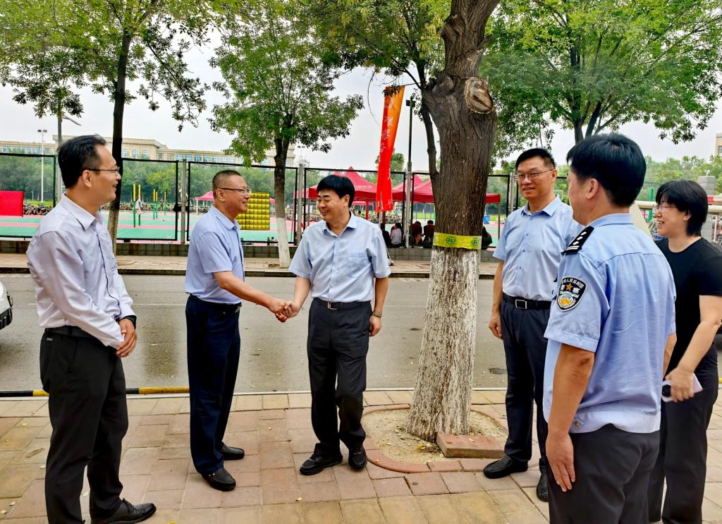 9月16日上午,学校党委书记吴君调研指导学校安全保卫工作,走访慰问驻校民警和安保人员,与驻地公安相关负责同志和驻地民警深入交流。
