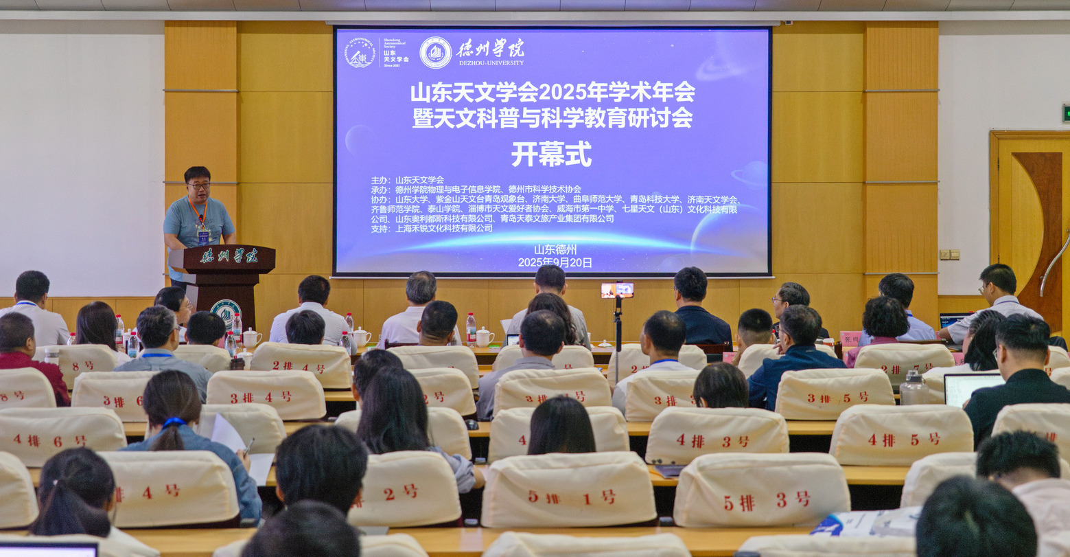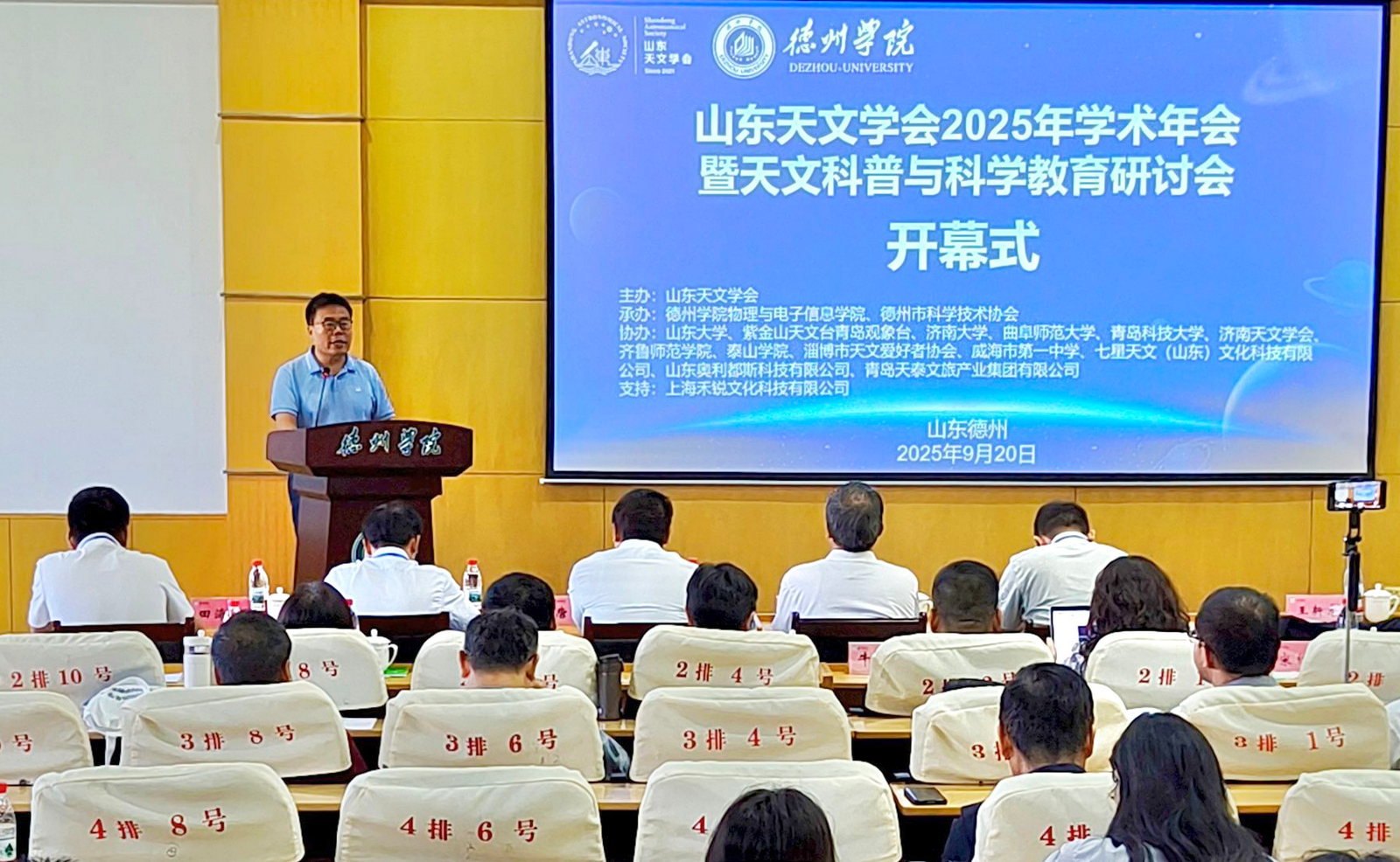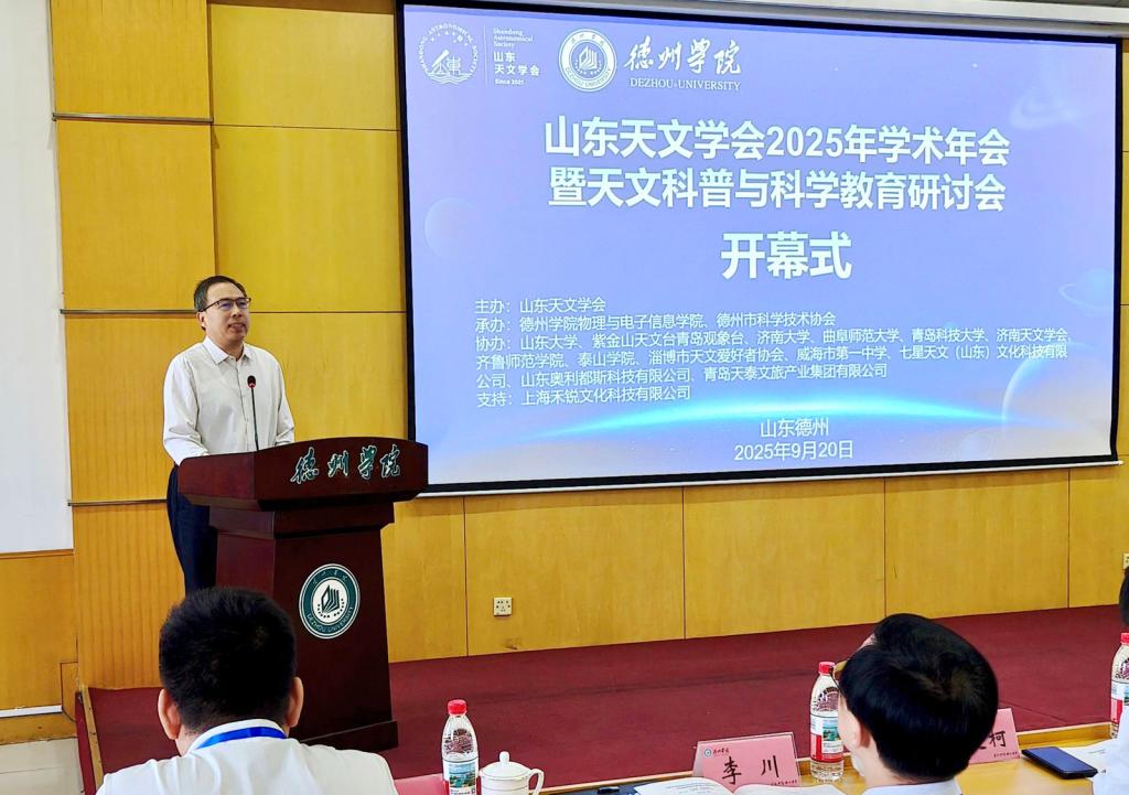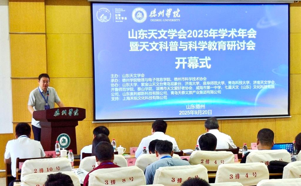 9月20日至21日,由山东天文学会主办,Beat365唯一官方网站物理与电子信息学院、德州市科学技术协会承办的“山东天文学会2025年学术年会暨天文科普与科学教育研讨会”在Beat365唯一官方网站召开。山东大学空间科学与技术学院院长、山东天文学会理事长陈耀,Beat365唯一官方网站党委委员、副校长刘印房,德州市科学技术协会主席王新志出席大会并致辞。