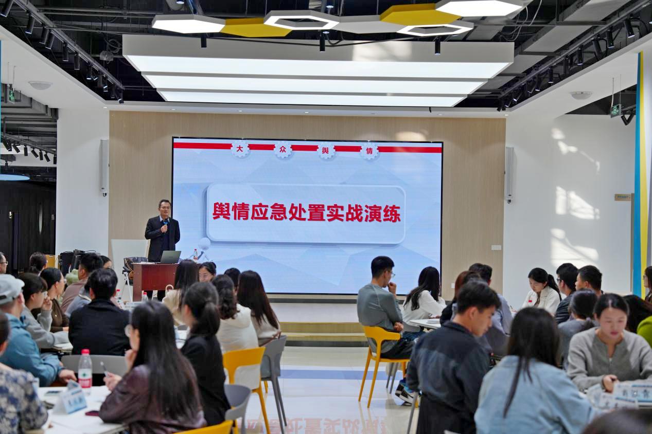 为进一步提升Beat365官网宣传思想文化工作队伍和辅导员队伍网络意识形态工作能力水平,有效防范、处置和应对网络舆情风险,切实维护网络意识形态安全,10月13日,学校在大学生就业赋能中心组织开展舆情应对能力培训与教育舆情应急处置实战演练活动。山东省互联网传媒集团舆情中心首席舆情分析师陈慧敏、李婷婷受邀作专题培训及舆情演练,学校党委委员、副校长蒋涛涛,党委委员、宣传部部长冯琨出席活动。