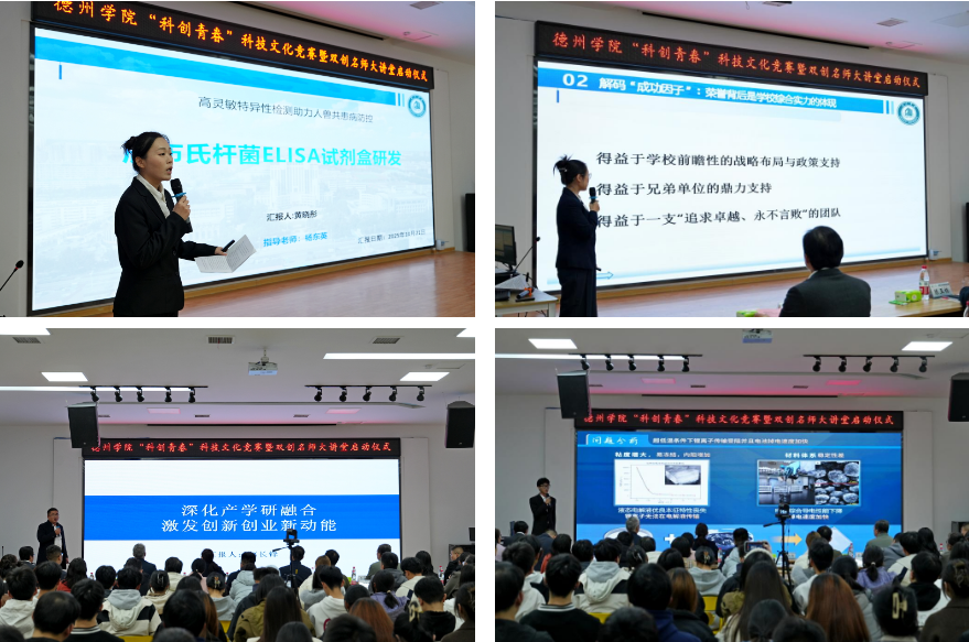 活动期间,学校参加2025年“挑战杯”全国大学生课外学术科技作品竞赛“揭榜挂帅”擂台赛和山东省大学生创新大赛的获奖团队分别进行了宣讲,系统性地分享了他们在比赛过程中的心路历程和备赛策略,为现场师生提供了可复制、可推广的实战经验。