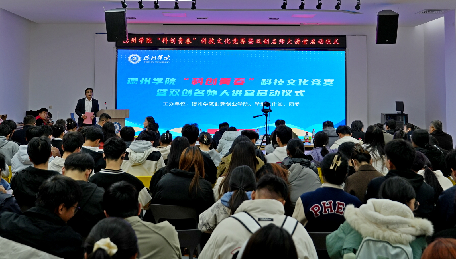 创新创业学院、学生工作部、团委及各学院相关负责人,学科竞赛项目师生代表、学生社团代表、研究生代表等130余人参加了本次活动。
