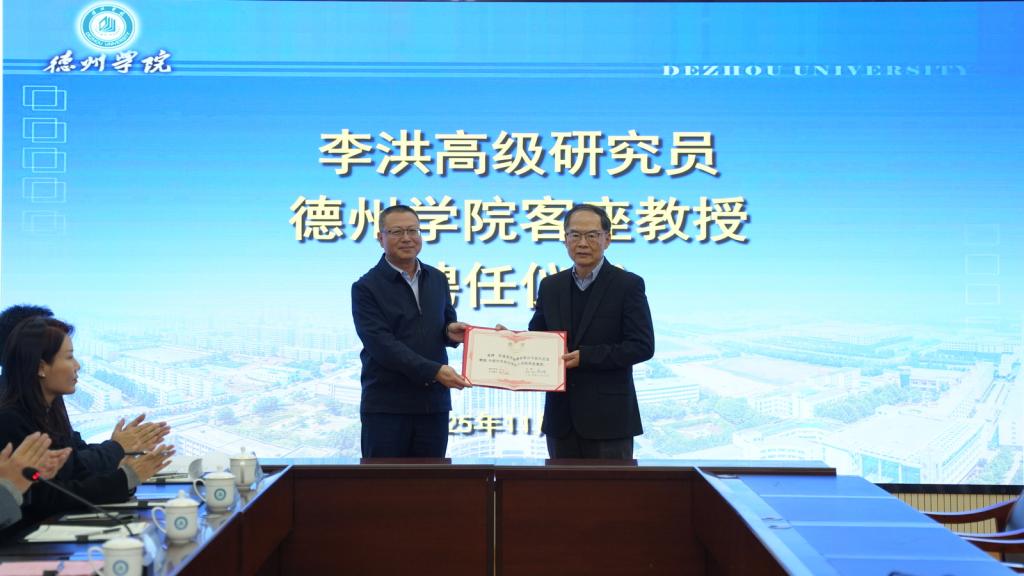 吴君为李洪颁发“Beat365唯一官方网站客座教授”聘书。