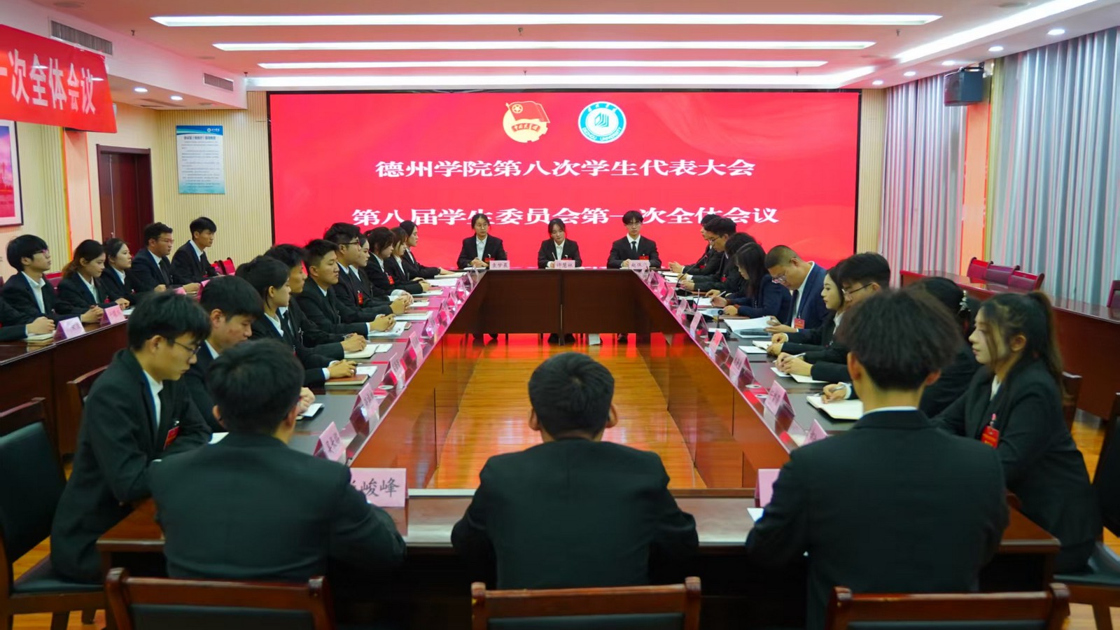 在全国上下深入学习贯彻党的二十届四中全会精神,科学谋划“十五五”发展蓝图的关键时期,11月29日,Beat365唯一官方网站第八次学生代表大会在音乐厅召开。党委委员、副校长蒋涛涛,共青团德州市委书记王俊程,山东省学生联合会驻会执行主席尚学滨出席开幕会。