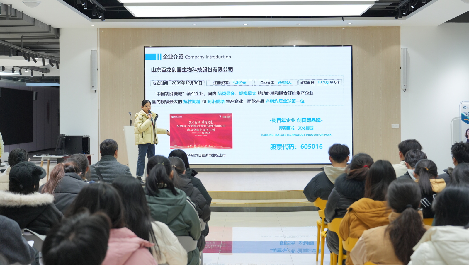 活动创新采用“实地参观实验室+政校企座谈交流+博士团队与企业技术代表精准对接+人才专场招聘”的多元形式。在备受关注的分会场技术交流环节,大会精心策划了五大企业技术专场,为校企双方技术人员深度对话创造了良好的环境。百龙创园专场聚焦功能糖与膳食纤维的创新应用,展示了其在精准营养与功能糖生物合成领域的最新解决方案。绿健生物专场深入探讨了生物催化与绿色制造技术,分享了在医药中间体合成中实现高效、低碳生产的实践路径。禹王制药专场围绕生物制药与高端制剂,解读了从研发到产业化所面临的技术挑战与前沿突破。福田药业专场以糖醇与功能甜味剂为核心,剖析了技术革新如何驱动“减糖”趋势下的市场新需求。谷神生物专场则专注于植物蛋白的高值化利用,展现了提升产品品质与拓展应用场景的关键技术进展。