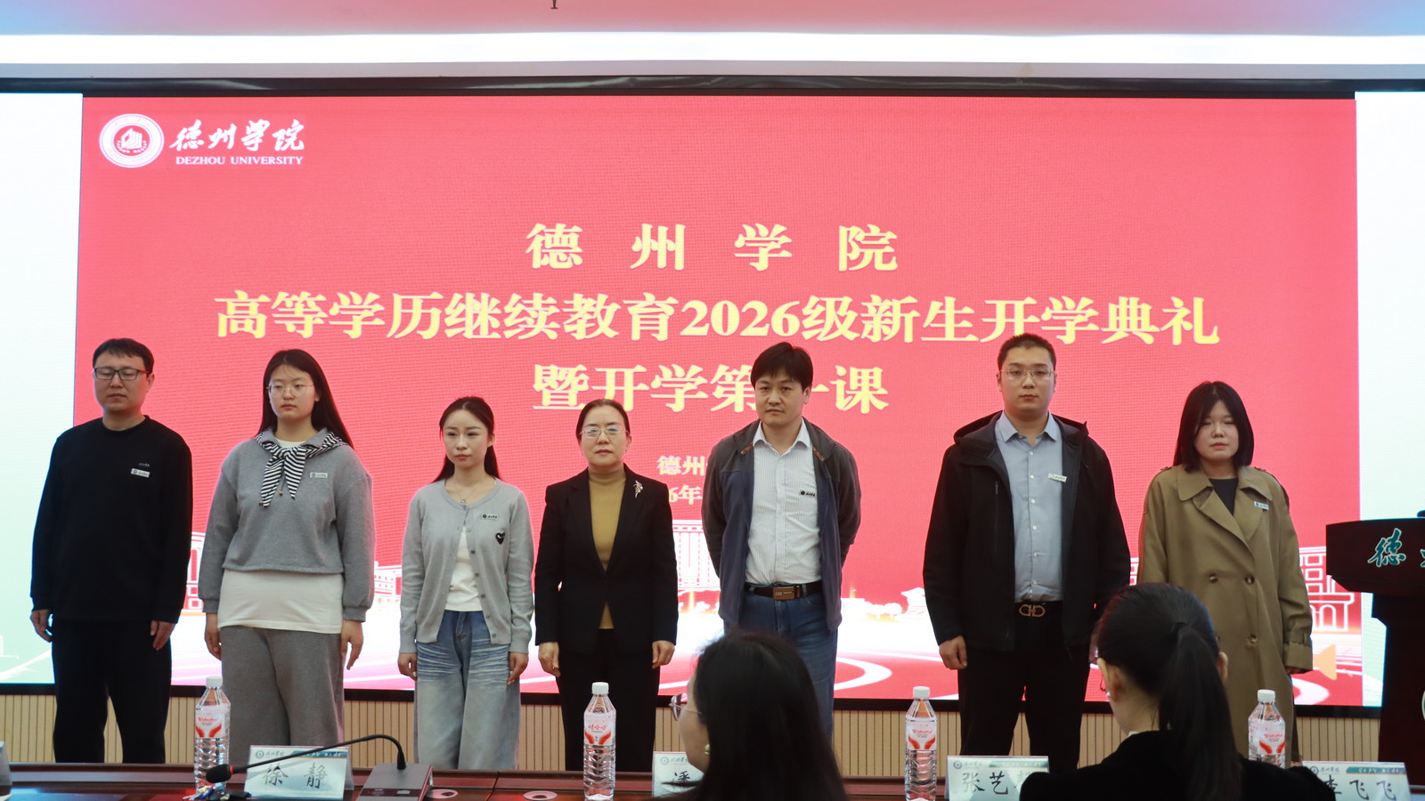 典礼在庄严的国歌声中拉开帷幕。徐静为新生代表佩戴校徽,代表学校对2026级新生表示祝贺与欢迎。她对新同学提出四点希望:崇德修身,坚守初心,做品行端正的有德者;勤学善思,笃志不倦,做博学精进的追光者;知行合一,学以致用,做脚踏实地的实干者;自律自强,勇毅前行,做担当有为的奋斗者。徐静强调,学校将搭建校友终身学习平台,让同学们“德院人”的身份成为终生的成长助力。