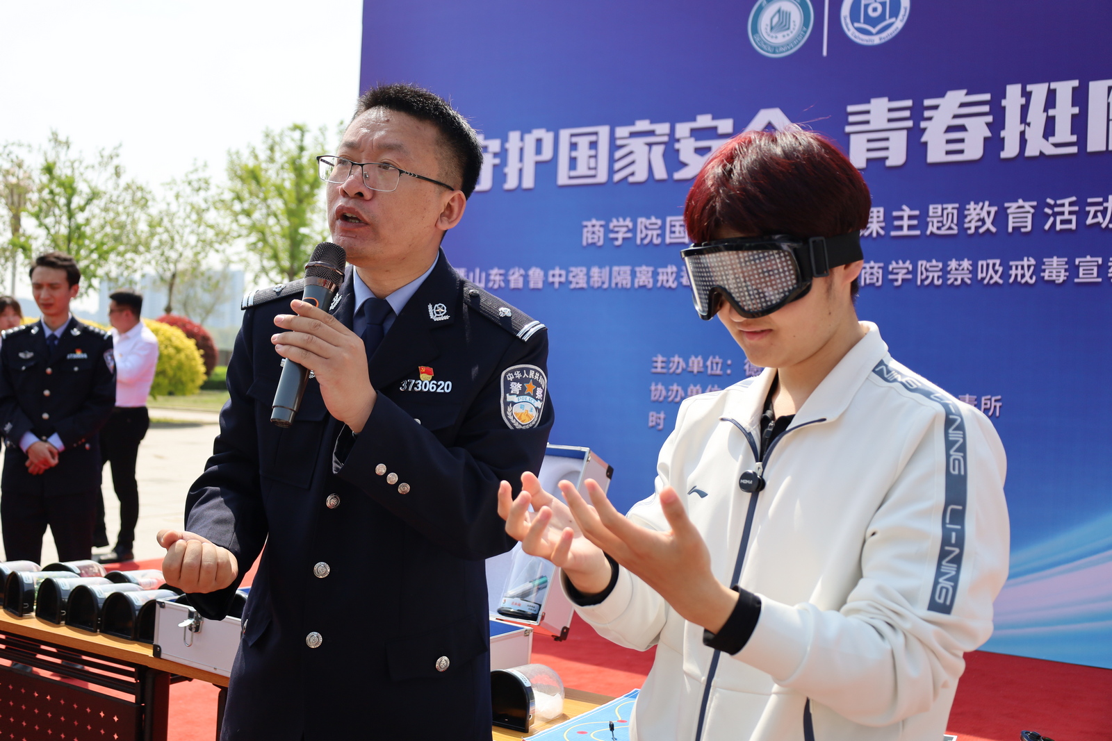 商学院与山东省鲁中强制隔离戒毒所联合举办“守护国家安全,青春挺膺担当”国旗下的思政课暨禁吸戒毒宣教共建启动仪式。双方签署《禁吸戒毒宣教共建协议》,为校所协同育人搭建制度框架,并为禁毒宣传教育基地揭牌。戒毒所社戒社康办公室副主任张鹏作《护航校园,无毒青春》专题报告,结合实际案例剖析毒品对个人、家庭及社会的严重危害。在国旗下,师生共同学习习近平总书记关于总体国家安全观和禁毒工作的重要论述,围绕毒品对青年群体的危害开展案例教学,增强识毒、防毒、拒毒意识。现场还设置了互动体验与知识竞答环节,以沉浸式学习深化认知、巩固成效。