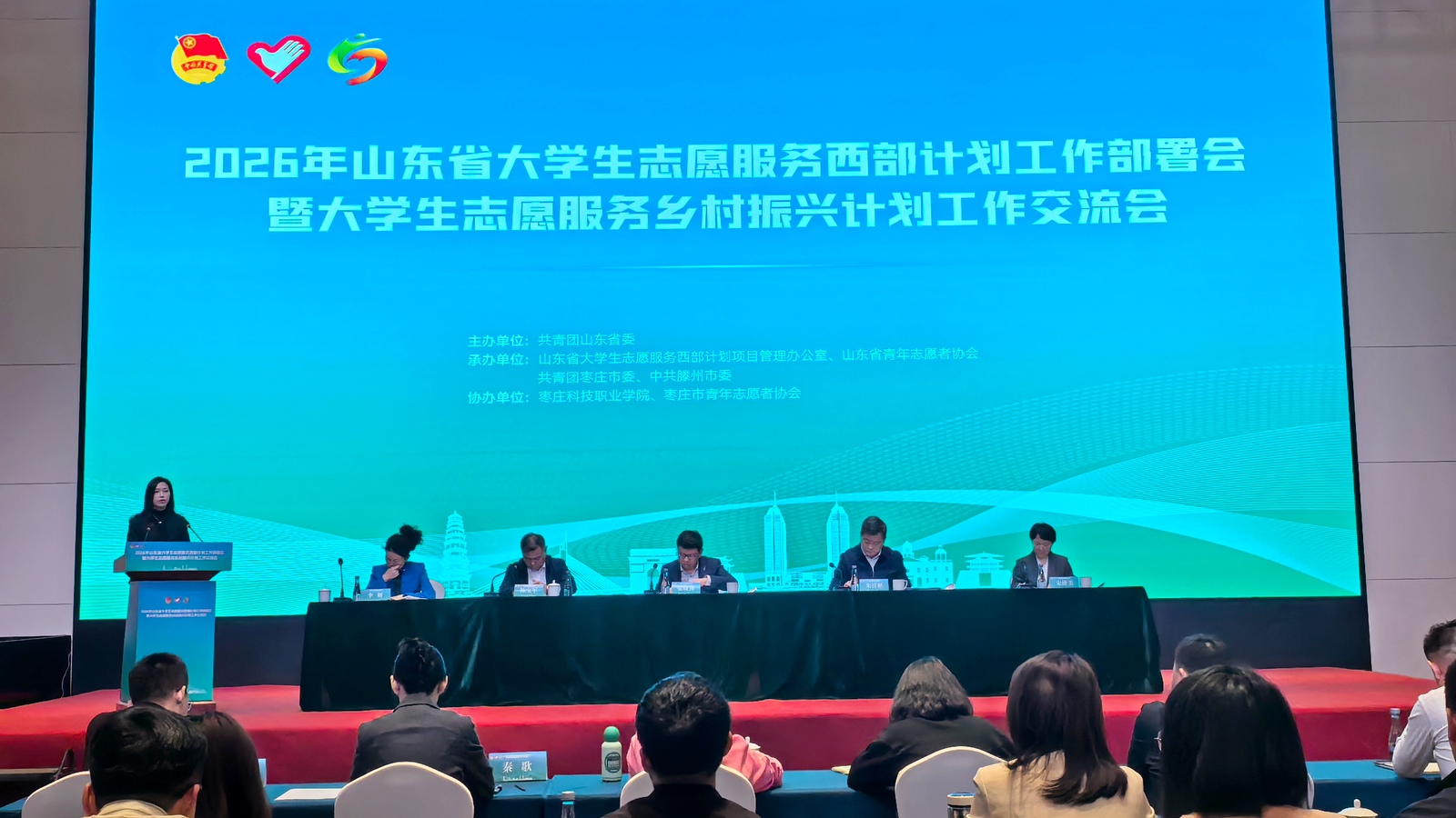 为贯彻落实团中央关于大学生志愿服务西部计划有关工作要求,4月14日至15日,由共青团山东省委主办的2026年山东省大学生志愿服务西部计划工作部署会暨大学生志愿服务乡村振兴计划工作交流会在枣庄滕州召开,校团委负责人参会并作典型发言。