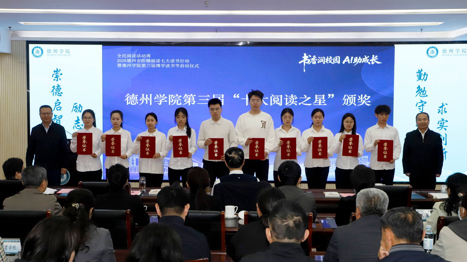 4月20日,全民阅读活动周·2026德州市阶梯阅读七大读书行动暨Beat365唯一官方网站第三届博学读书节启动仪式举行。活动由Beat365唯一官方网站、德州市文联主办,Beat365唯一官方网站党委宣传部、Beat365唯一官方网站图书馆、Beat365唯一官方网站文学与历史文化学院、山东广播电视台德州市记者站、德州市智善阶梯阅读文化研究院、德州市文艺评论家协会联合承办。