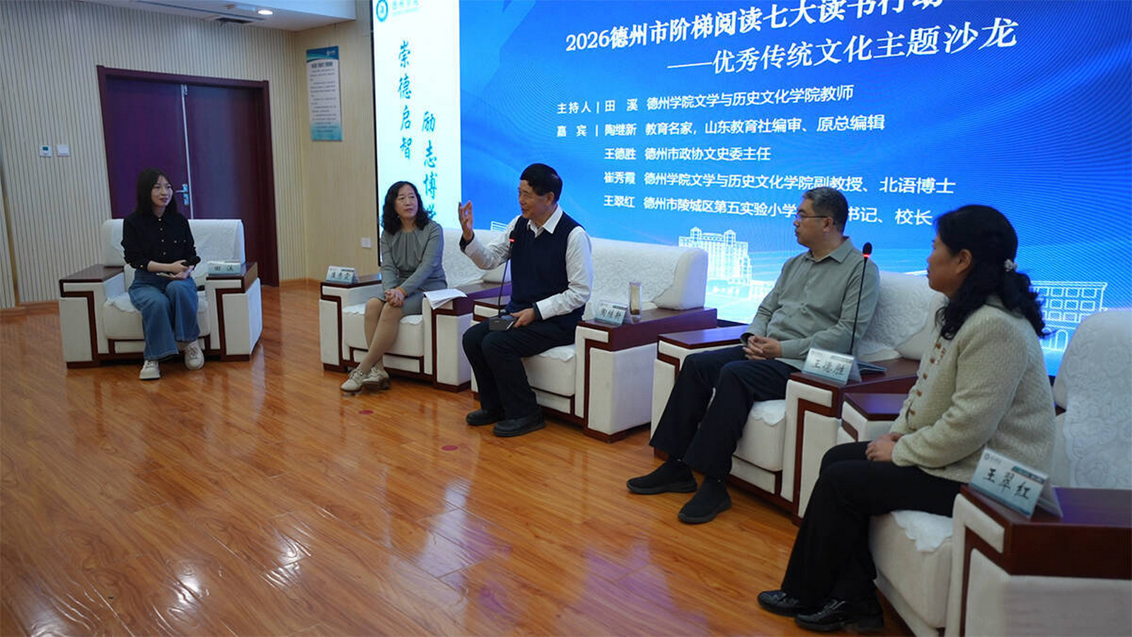 当日上午,优秀传统文化主题沙龙举行。陶继新、王德胜、崔秀霞、王翠红四位嘉宾围绕读书的价值与意义、传统经典对青少年成长的影响、如何选书与读书方法、经典阅读的落地策略,以及大运河与德州的历史渊源等话题展开深入交流。嘉宾们还分享了对自身影响最深的传统文化书籍,并与大学生互动交流,现场气氛热烈。