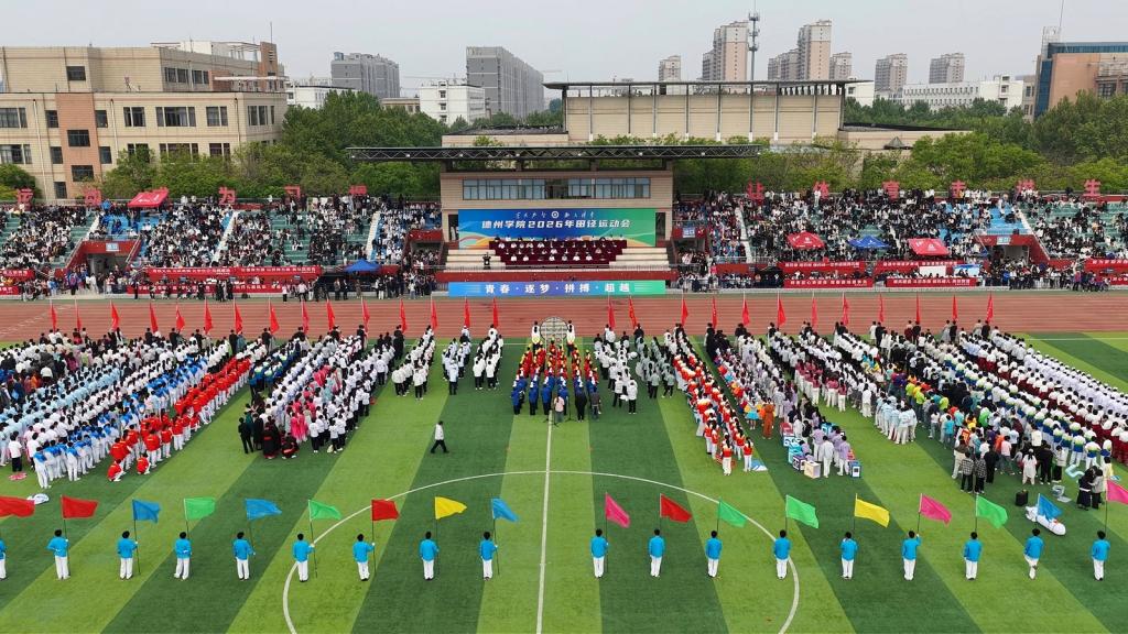 开幕式节目 精彩纷呈。1500余名学子登台亮相。《春启德院 领航致远》展现了校园蓬勃生机与师生跟党走的坚定信念;《鼓韵华章》以铿锵鼓点和整齐旗阵奏响青春乐章;《山河图》融合街舞、舞龙与武术,彰显家国情怀;千人广播操展演活力四射,将气氛推向高潮。