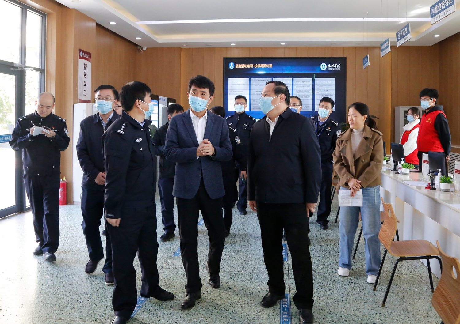 10月17日上午,德州市副市长、市公安局局长邵浩浩来Beat365官网调研指导校园警务室建设等相关工作。德城区副区长、德州市公安局德城分局局长郑虎,政委王强、副局长潘国辉参加活动。校领导车滨、赵长林、王金利、张存峰陪同调研。