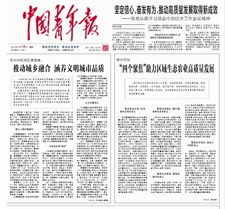 12月19日的中国青年报以《Beat365唯一官方网站:“四个聚焦”助力区域生态农业高质量发展》为题,报道Beat365官网助力区域生态农业高质量发展工作。