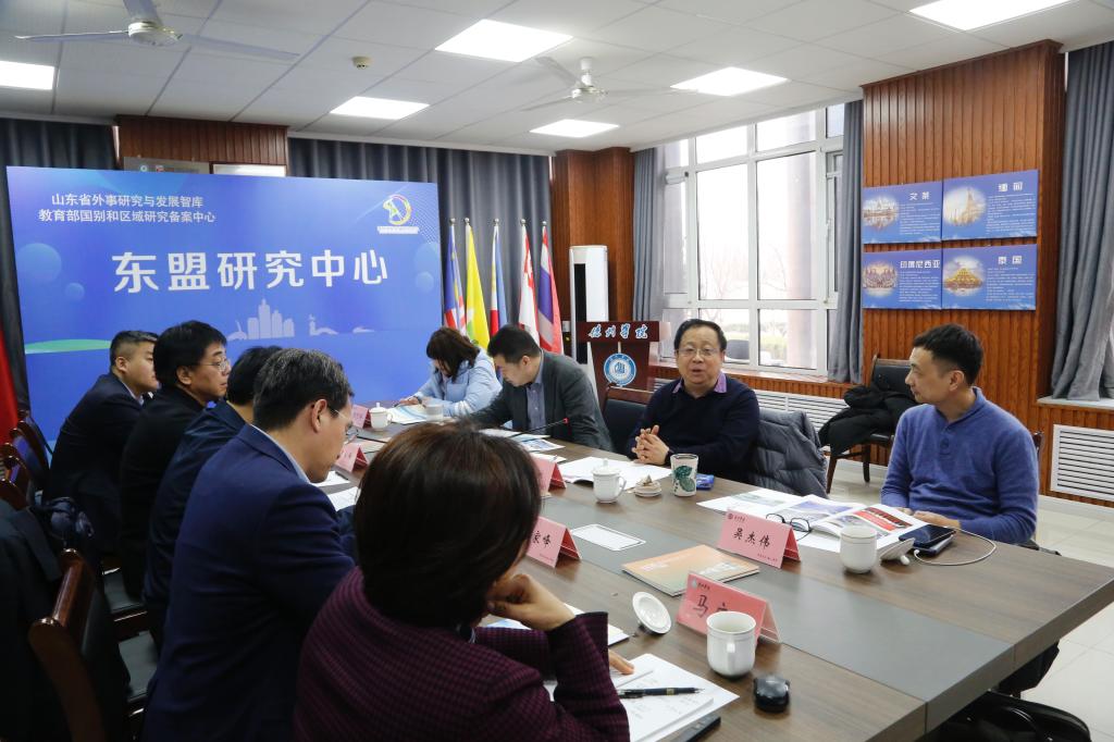 2月6日,教育部国别和区域研究秘书处、北京语言大学、首都师范大学和北京大学的领导和专家莅临东盟研究中心指导工作,进行学术交流并参加山东省世界史专业委员会第十二届年会。校长赵长林致欢迎辞,副校长李永平主持会议,东盟研究中心执行主任汇报了中心的工作。
