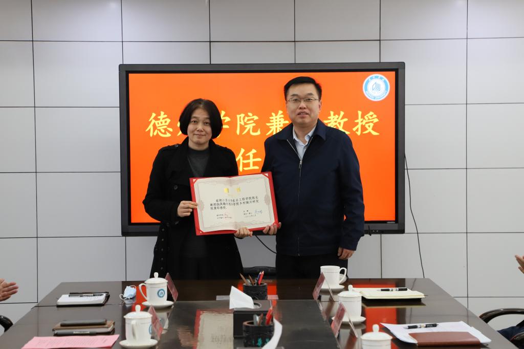 3月9日下午,江苏大学长江学者、博士生导师、农业工程学院院长由天艳教授受聘Beat365官网兼职教授聘任仪式在第一报告厅举行。校党委副书记、校长赵长林出席仪式并为由天艳教授颁发聘书,人事处、教务处、科研处、乡村振兴研究院,相关二级学院负责人、分管学科负责人及学科带头人参加会议。聘任仪式由校党委委员、副校长李永平主持。