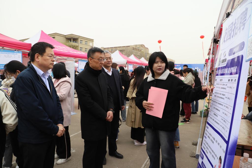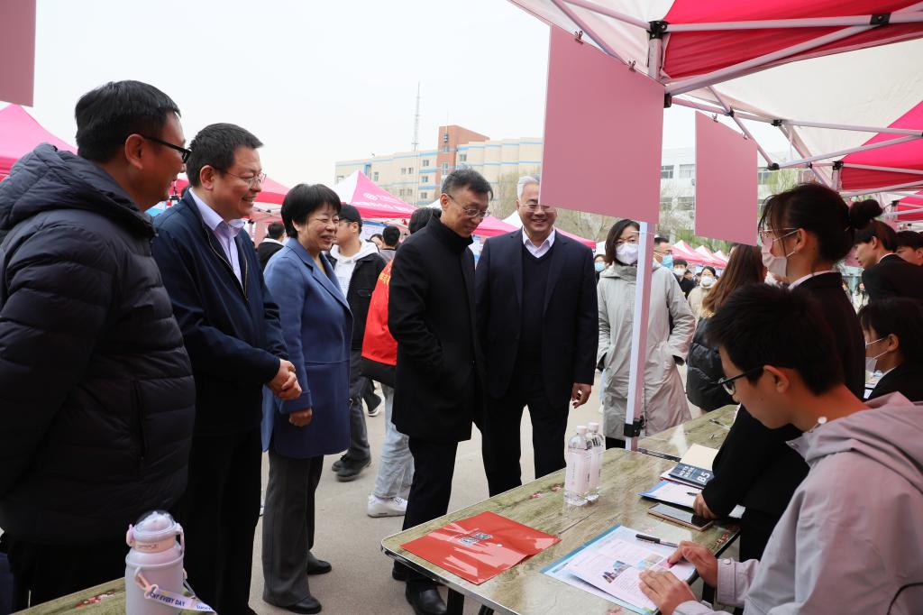 3月25日上午,“春风送暖•梦想起航”Beat365唯一官方网站2023年春季校园招聘会在南操场拉开帷幕,党委委员、副校长迟沂军,党委委员、党委宣传部(教师工作部)部长任立春进行现场指导。