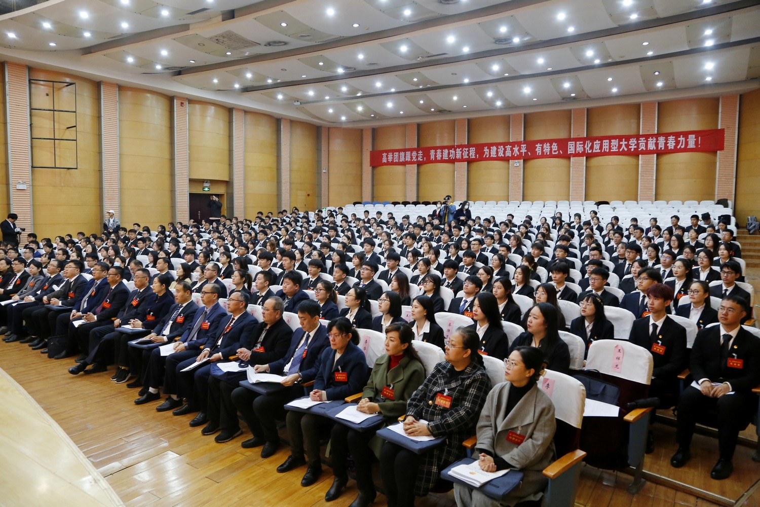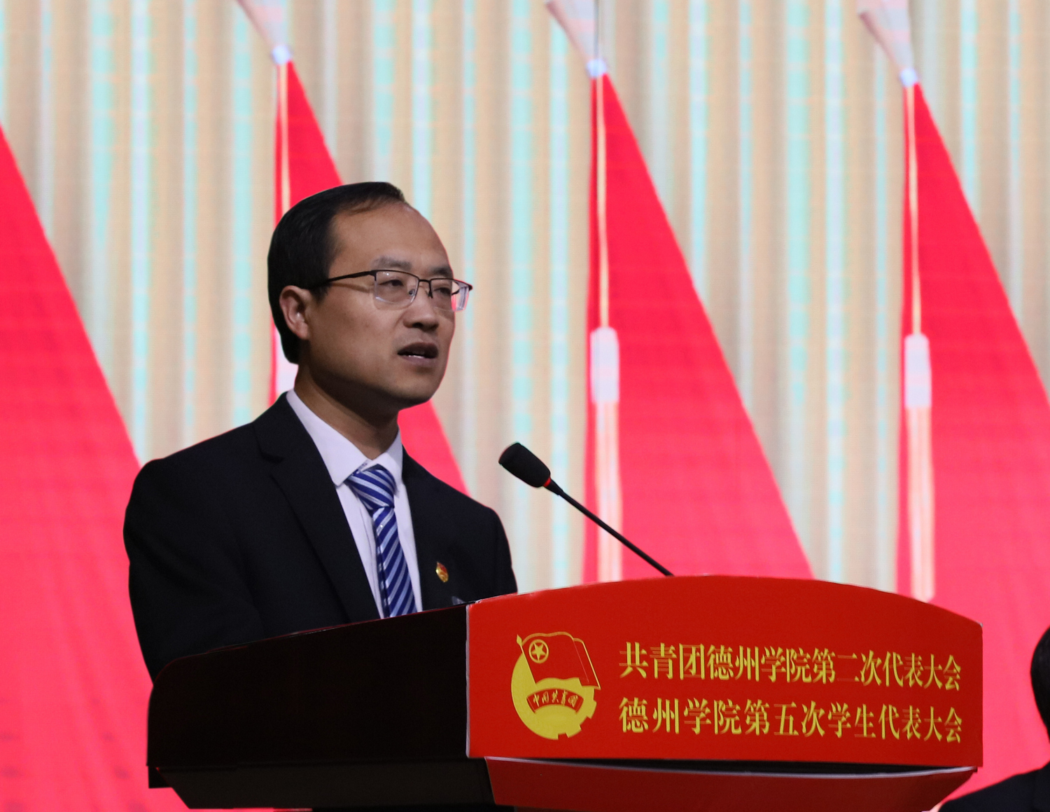 校团委书记作了题为《高举团旗跟党走 青春建功新征程 为建设高水平有特色国际化应用型大学贡献青春力量》的工作报告。报告全面回顾和总结了共青团过去五年的主要成绩和基本经验,明确了未来五年工作总体思路和主要任务,着力打造更加充满活力、更加坚强有力的德院共青团。