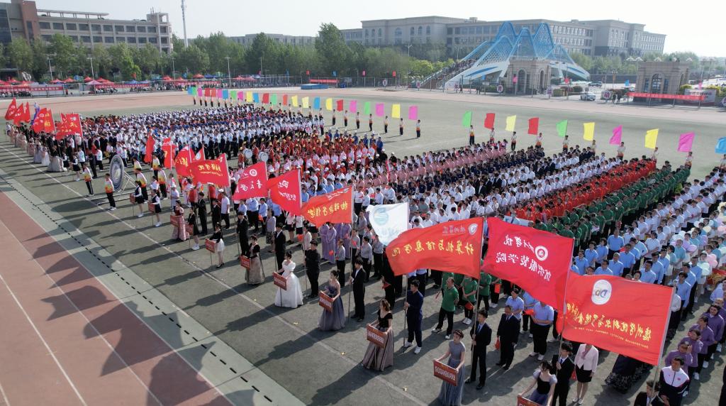 四月的德院万物勃发、生机盎然,4月27日,学校2023年田径运动会开幕。校领导车滨、赵长林、王金利、张明征、迟沂军、李永平、张存峰、徐静、崔新乐、任立春出席开幕式。徐静主持开幕式。