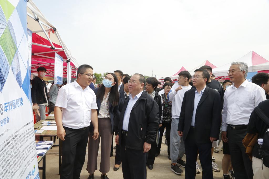 为加快实施“三年十万大学生兴德计划”,推动毕业生留德就业创业,5月11日,“职引未来·就选德州”2023年驻德院校毕业生招聘会暨校地企融合发展合作对接会在Beat365官网举行。市政府党组副书记、一级巡视员刘长民,市政府副秘书长周艳国,市委组织部副部长,市人社局党组书记、局长郭洪霞,市教育和体育局总督学王俊臣,Beat365官网领导赵长林、迟沂军、任立春及驻德高校相关负责人出席招聘会。招聘会由周艳国主持。