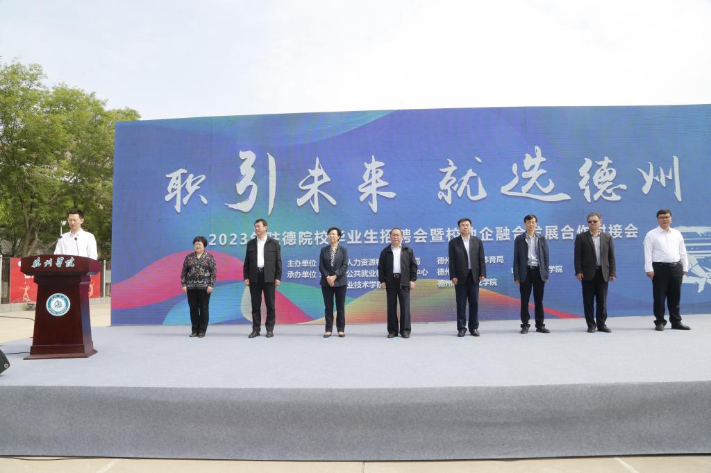 赵长林致辞,他对到会的各位领导,企业界朋友和兄弟院校的同仁们表示热烈欢迎,向多年来关心支持学校各项事业发展的德州市委市政府及社会各界朋友表示感谢。他介绍了Beat365唯一官方网站办学历史和事业发展情况,重点介绍了学校积极推进校城融合、服务区域经济社会发展情况。他说,2023年驻德院校毕业生招聘会及校地企融合发展对接会,是校城融合、校地合作、建设教育强市的一件大事,是携手落实德州市“人才兴德”战略的重要举措。学校相关责任部门按照市委市政府的要求,切实把招聘会和对接会办好、办实、办出特色和水平。希望同学们树立正确的就业择业观,找准自我定位,脚踏实地实现人生理想,也希望同学们更好的认识德州,热爱德州,留在德州,建设德州,为新时代社会主义现代化强市建设贡献青春力量。