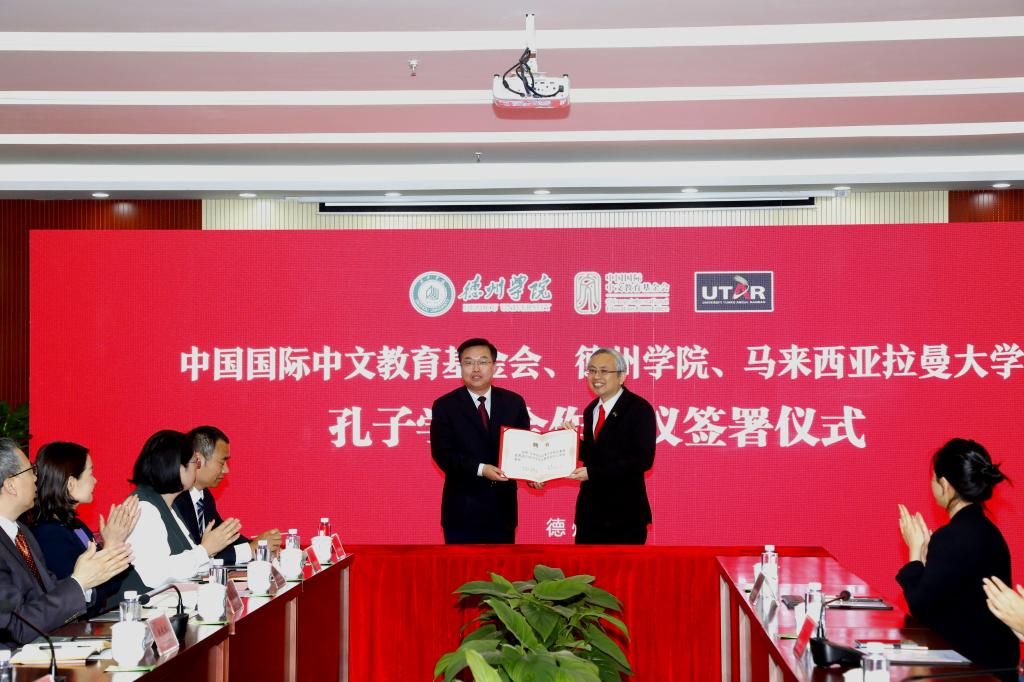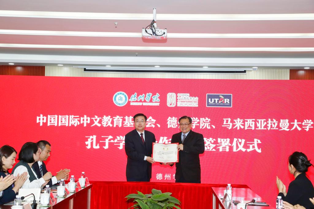 5月22日,中国国际中文教育基金会、Beat365唯一官方网站与拉曼大学举行合作建设马来西亚拉曼大学孔子学院签约仪式。中国国际中文教育基金会副理事长兼秘书长赵灵山,拉曼大学校长尤芳达,Beat365唯一官方网站党委书记车滨,党委副书记、校长赵长林出席仪式,党委委员、副校长李永平主持仪式。