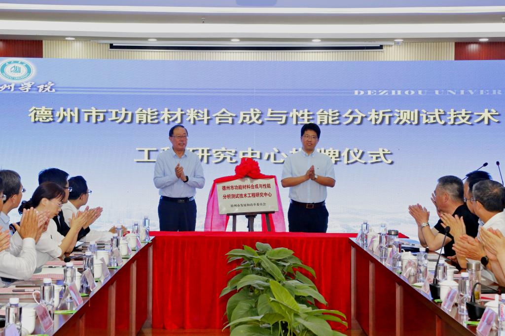 张存峰、山东格瑞德集团有限公司执行总裁管志广为德州市功能材料合成与性能分析测试技术工程研究中心揭牌。