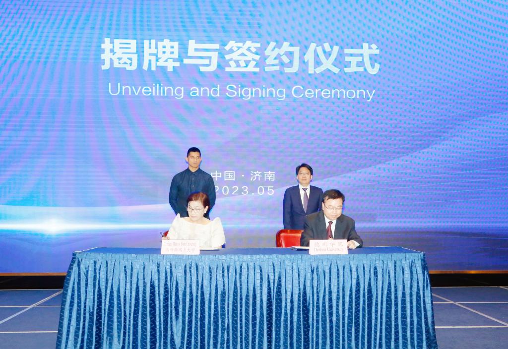 邓云锋与蒙诺托克共同为“山东省—北伊罗戈省人文教育交流基地”揭牌。