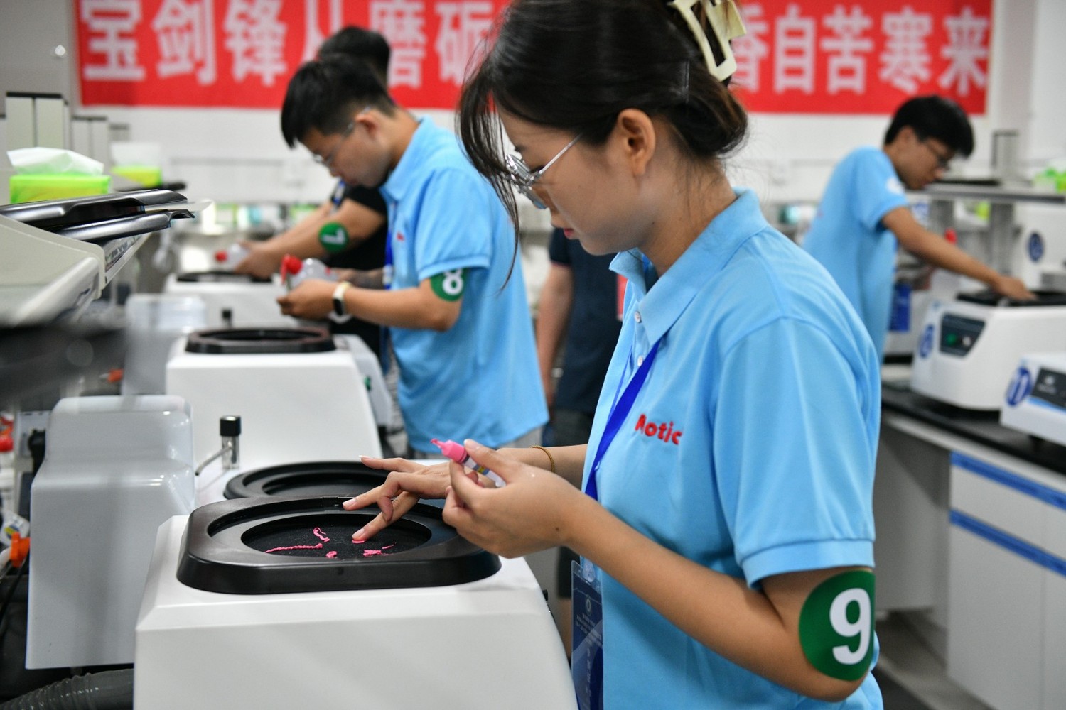 7月18日上午7:30比赛正式开始。参照全国大学生金相技能大赛标准,参赛选手在30分钟之内完成磨制、抛光、腐蚀和金相显微观察等内容,展现出了良好的参赛风貌和参赛水平。评审委员坚持原则、恪守尽职,对参赛选手从图像质量、样品清洁程度、样品平整度和操作习惯四个方面进行评审打分。为确保大赛的公正、公平、公开,赛前对所有选手进行随机抽签、分组,对所有试样进行保密处理,并通过在线直播实时展示各个样品在评审时的金相照片。经过近12个小时的激烈角逐,大赛评选出个人一等奖33项、二等奖91项、三等奖123项;团体一等奖4项、二等奖5项、三等奖7项。
